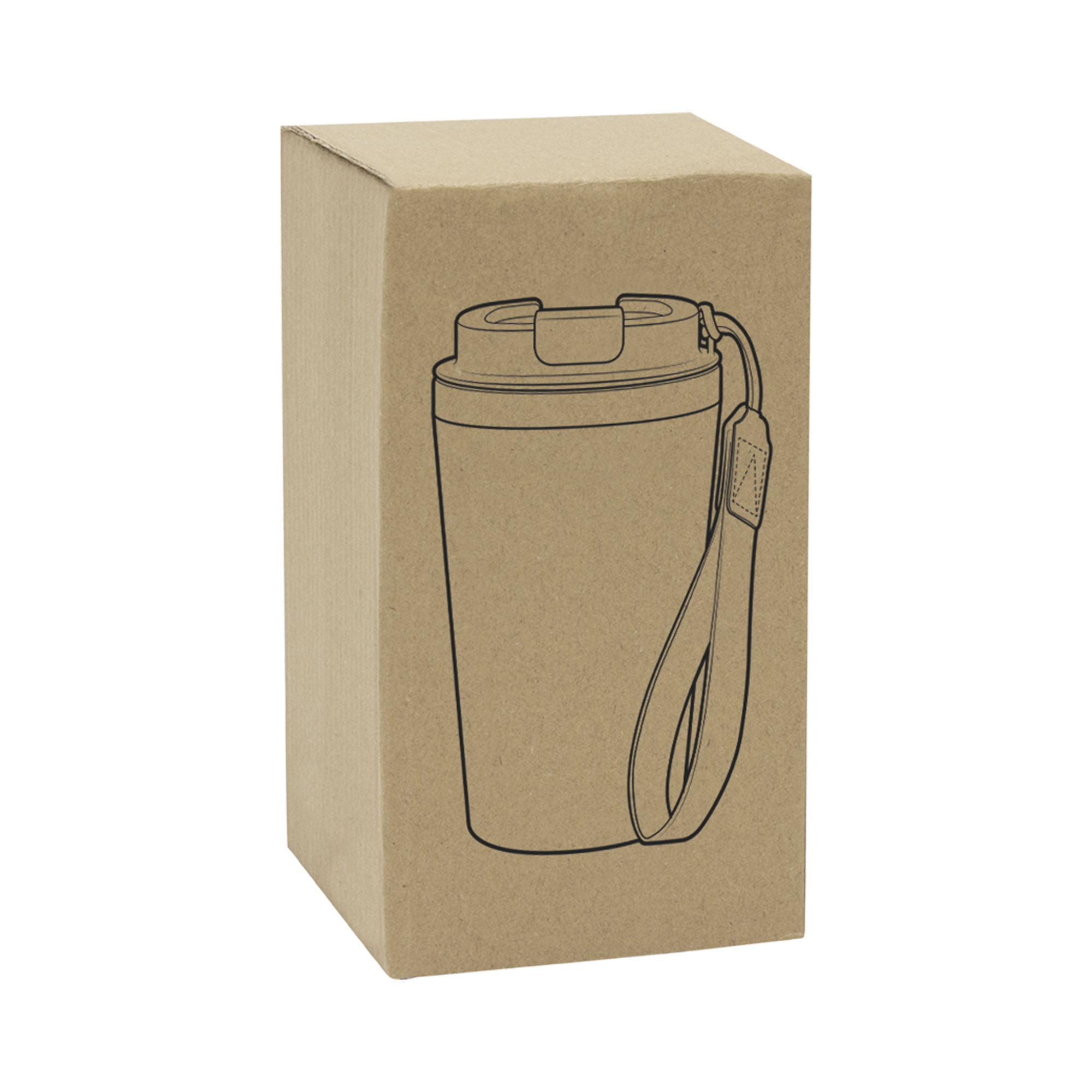 Mug doble pared con asa colgante. Interior de acero inoxidable 304 y exterior de Polipropileno con acabado mate. Tapa a rosca de polipropileno con anillo de silicona y seguro antiderrame del mismo color del mug. Asa de poliuretano y poliéster.